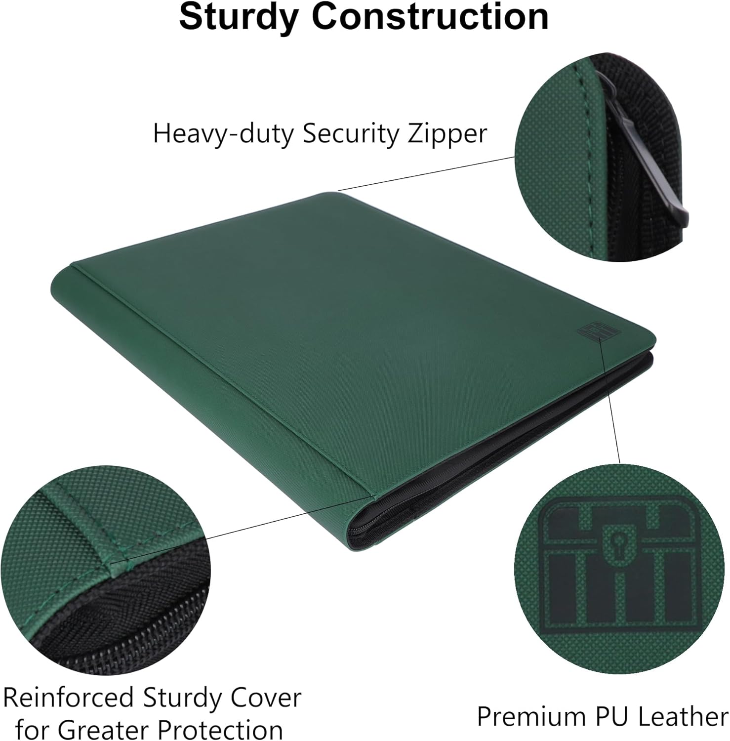 Rieton 16 Pocket Top loader Binder, Holds 640 Top Loaders, Top loader Binder with Sleeves for 3'' x 4'' Top loaders - Green