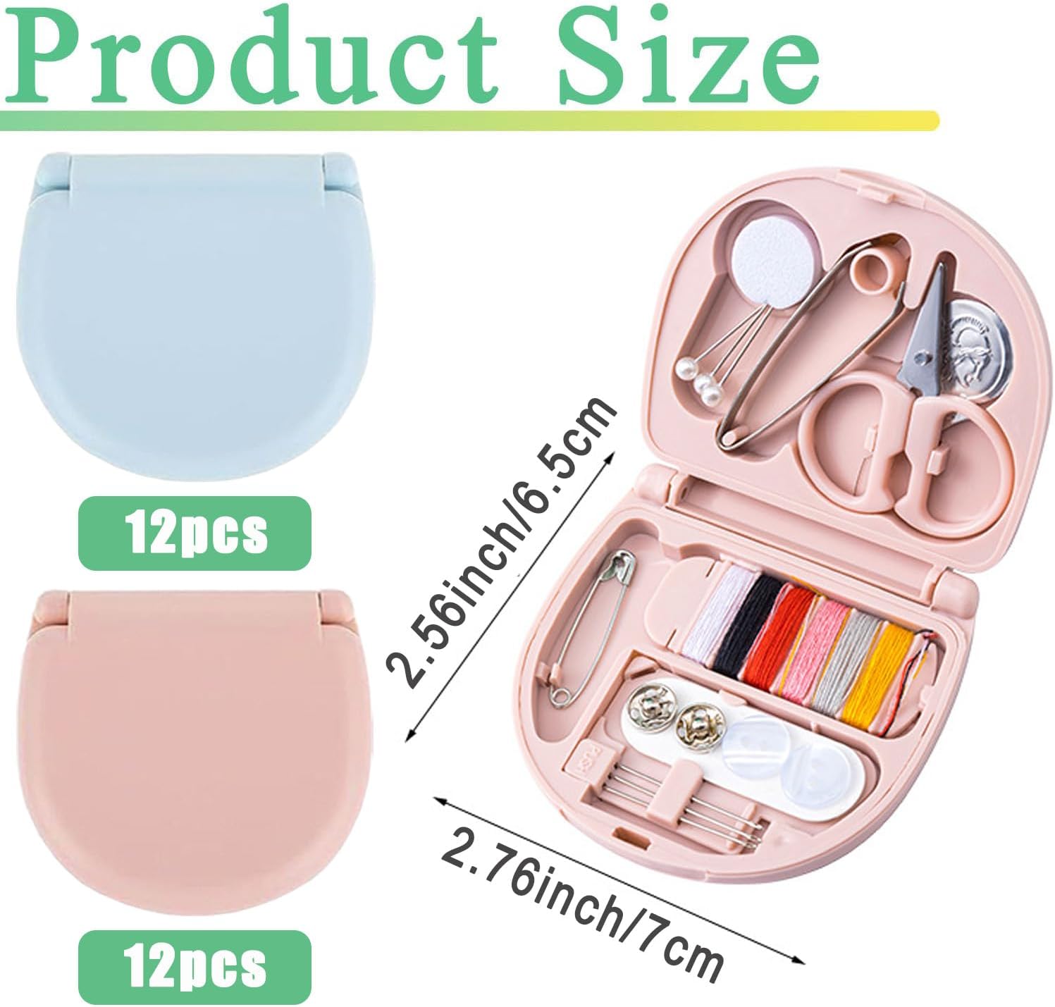 【Mini Portable Sewing Kits】You will get 8 sewing kits in 2 colors (pink and blue). Each case includes pins, scissors, threader, tweezers, snaps, buttons, needles, and a multi-color thread card. Each mini sewing kit measures about 2.76 x 2.56 x 0.67 inches / 7 x 6.5 x 1.7 cm, foldable and convenient for travel or daily use.