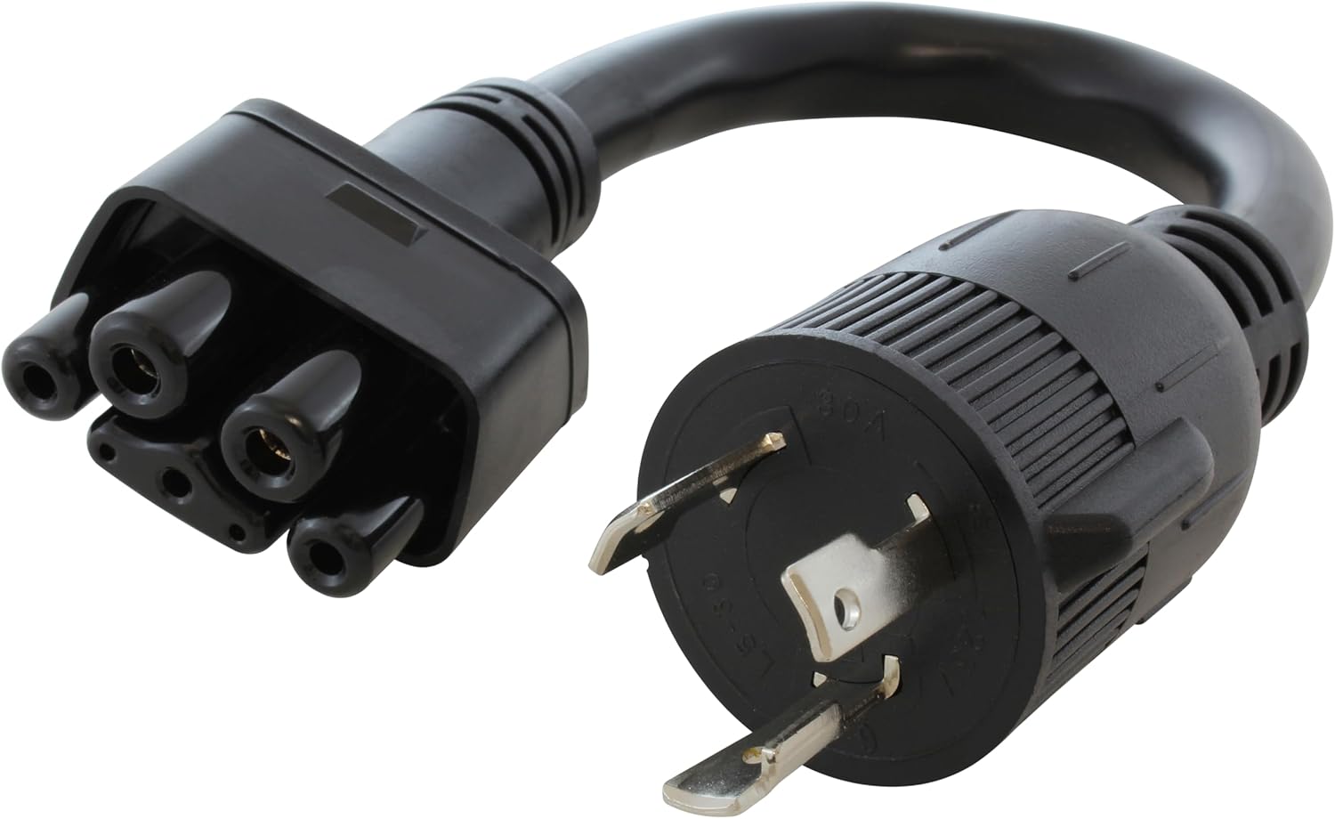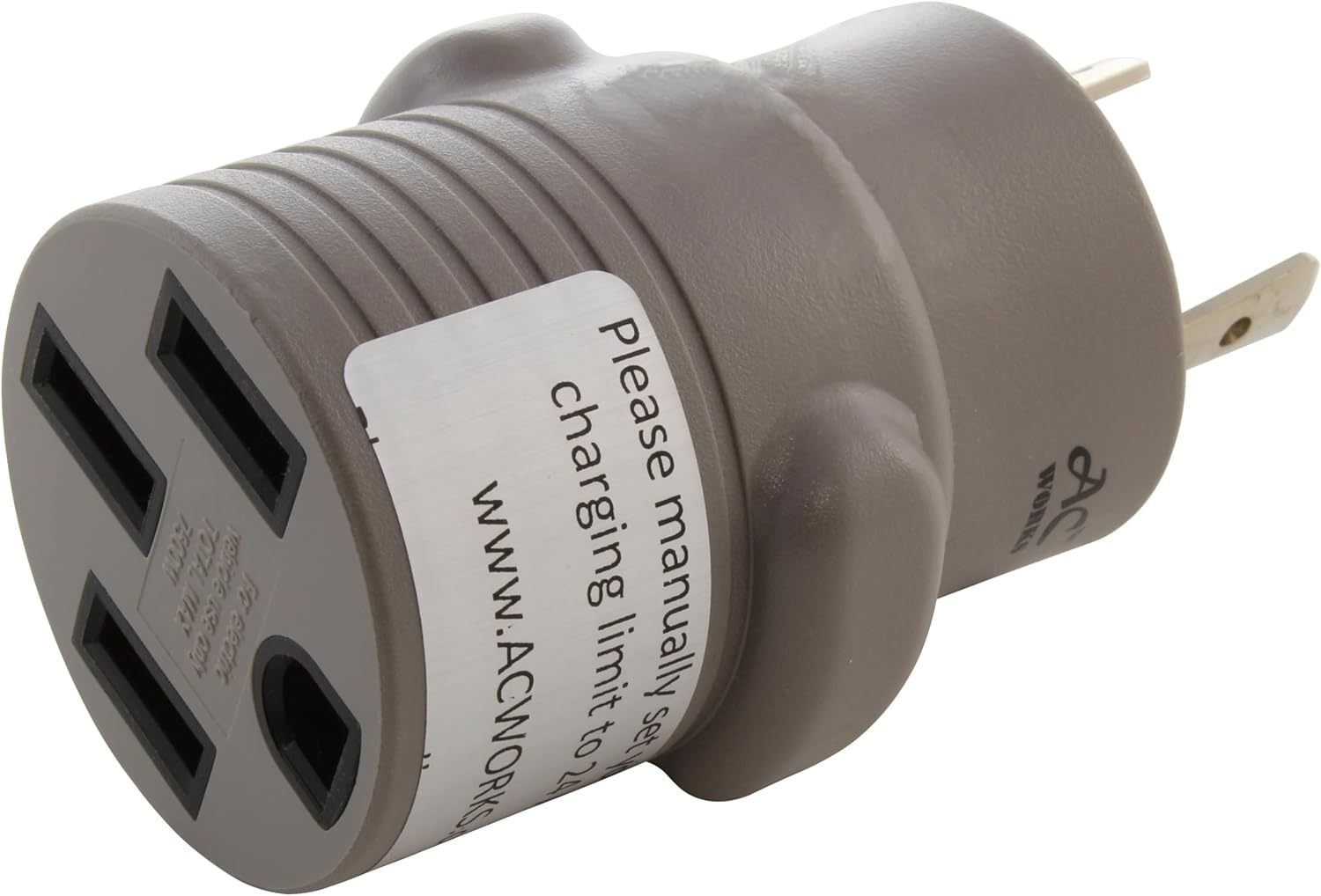 This NEMA TT-30 adapter comes installed with a chip that pre-sets your charging limit to 24 Amps. It can be used with your Generation II Tesla mobile Connector to charge your car at a campsite/RV outlet. NEMA TT-30P Plug with Easy Unplug Handle Feature Tesla EV Charging Generation 2 Connector Super Heavy-Duty Nickel-Plated to Prevent Copper Rusting