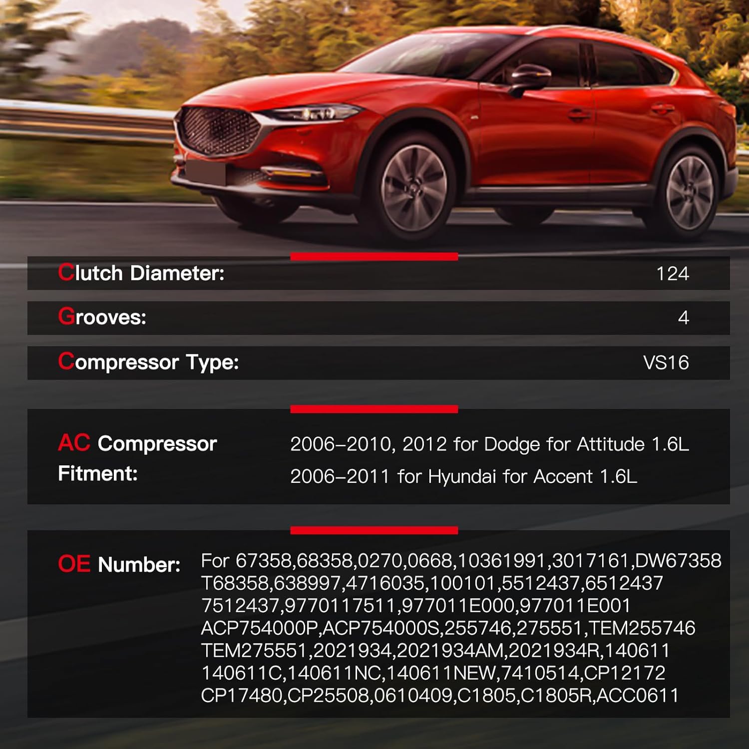 | Included Components | AC Compressor with Clutch |