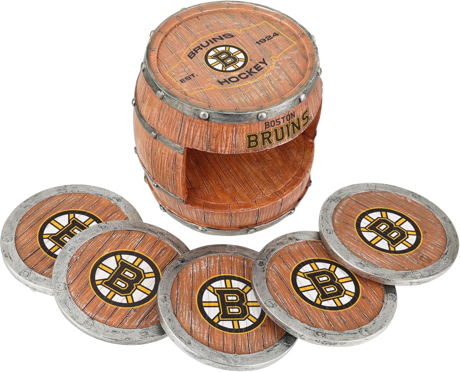 Championship rings? Yay! Unsightly rings on the coffee table? Boo! Break out the beverages worry-free and get ready for every watch party with these officially licensed 5 Pack Barrel Coaster Set.