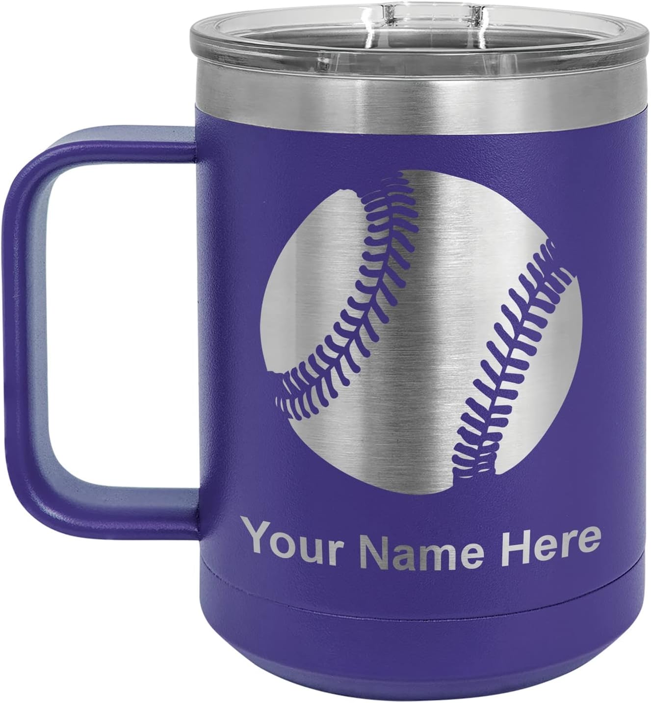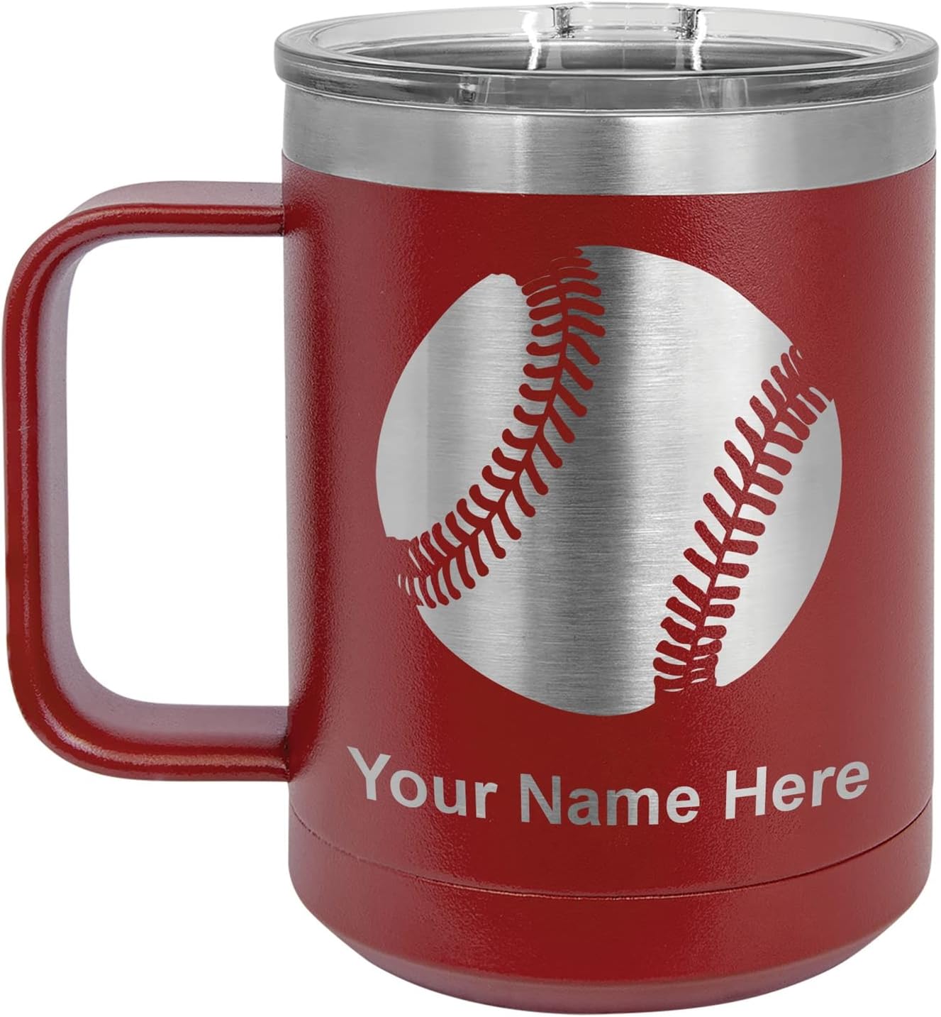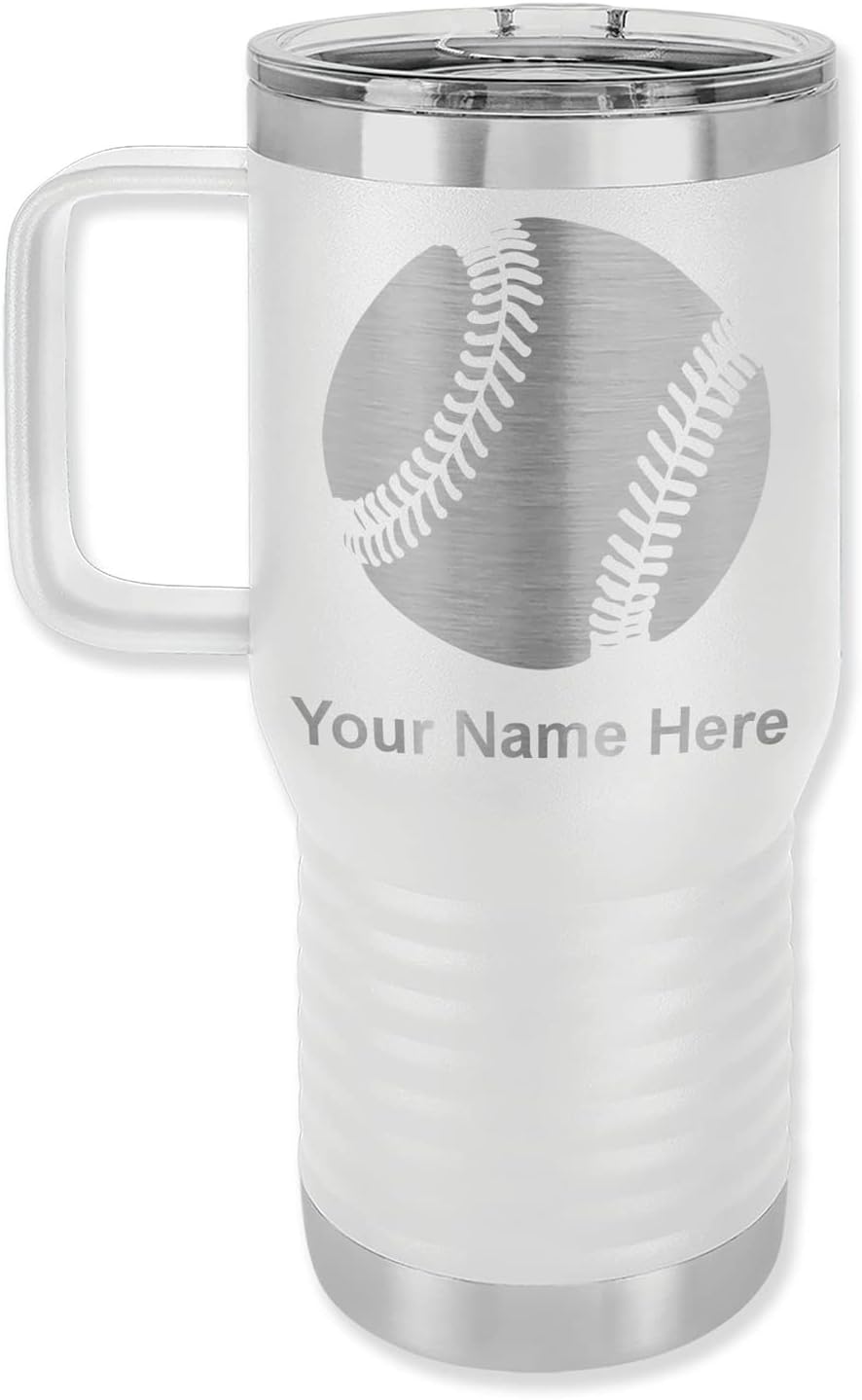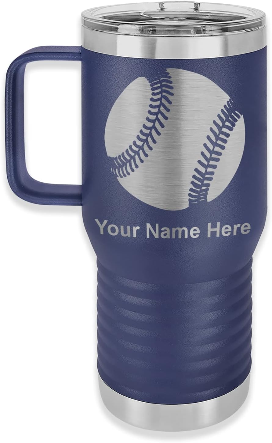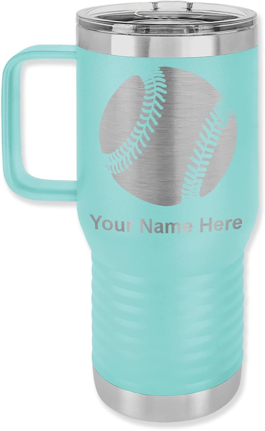 LaserGram 40 ounce Travel Mug with Handle that is laser engraved with the image that you see in the photo. Your own personalized text will be laser engraved below the image. Features double-walled stainless steel vacuum insulation with a clear lid. Click the "Customize Now" button to begin customizing your mug.