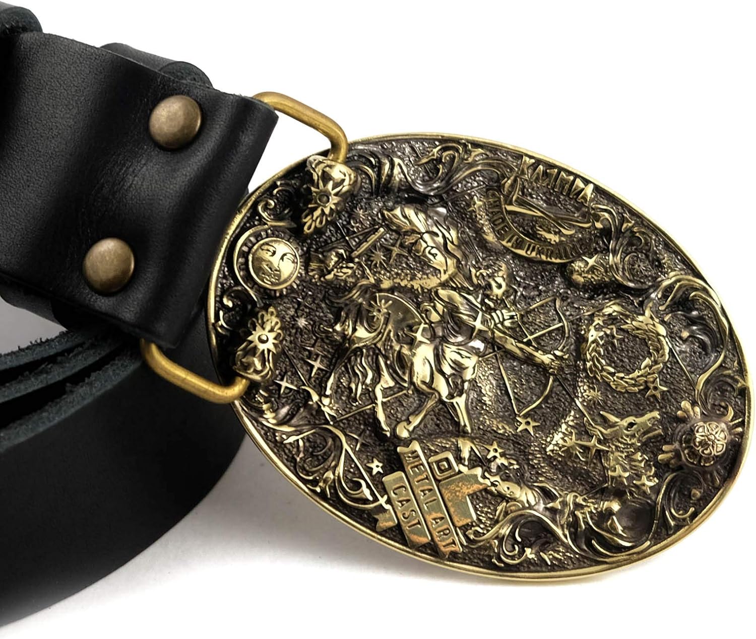 ATTENTION U.S. BUYERS:✅ We take care of all import duties and taxes (DDP) - no extra fees upon delivery.🚚Shipping delays may occur starting late August due to upcoming changes in U.S. customs regulations (effective August 29).Aries - is the first astrological sign in the zodiac, spanning the first 30° of celestial longitude, and originates from the constellation of the same name. Under the tropical zodiac, the Sun transits this sign from approximately March 20 to April 21 each year.Handmade in Ukraine!Solid Belt Buckle - Buckles are cast from brass. Leather Belt - Made from 100% full hide real leather straight, which means it will serve you for a long time. Top grain leather belts may have wrinkles, scars, scratches that are inherent characteristics, and natural beauty calfskin leather.Unisex Belt - Our belts fit perfectly for both men and women. So it can be a great present for any occasion! Easy to set up! - Our belts are designed for self-shortening and come in one size. The buckle is attached to a leather belt mount, which is connected to a belt with a screw, which makes it easy to shorten the belt. To shorten the belt should: 1. Unscrew the screw that holds the buckle 2. Cut the excess of skin, according to your size 3. Make a hole for the screw 4. Fasten buckle belt Buckle sizes: 2.67"x3.58" (68х91 mm)Belt's length: 120-125cm (47 inches-48 inches). Belt's width: 38 or 45 mm (1,5 inches or 1,8 inches).
