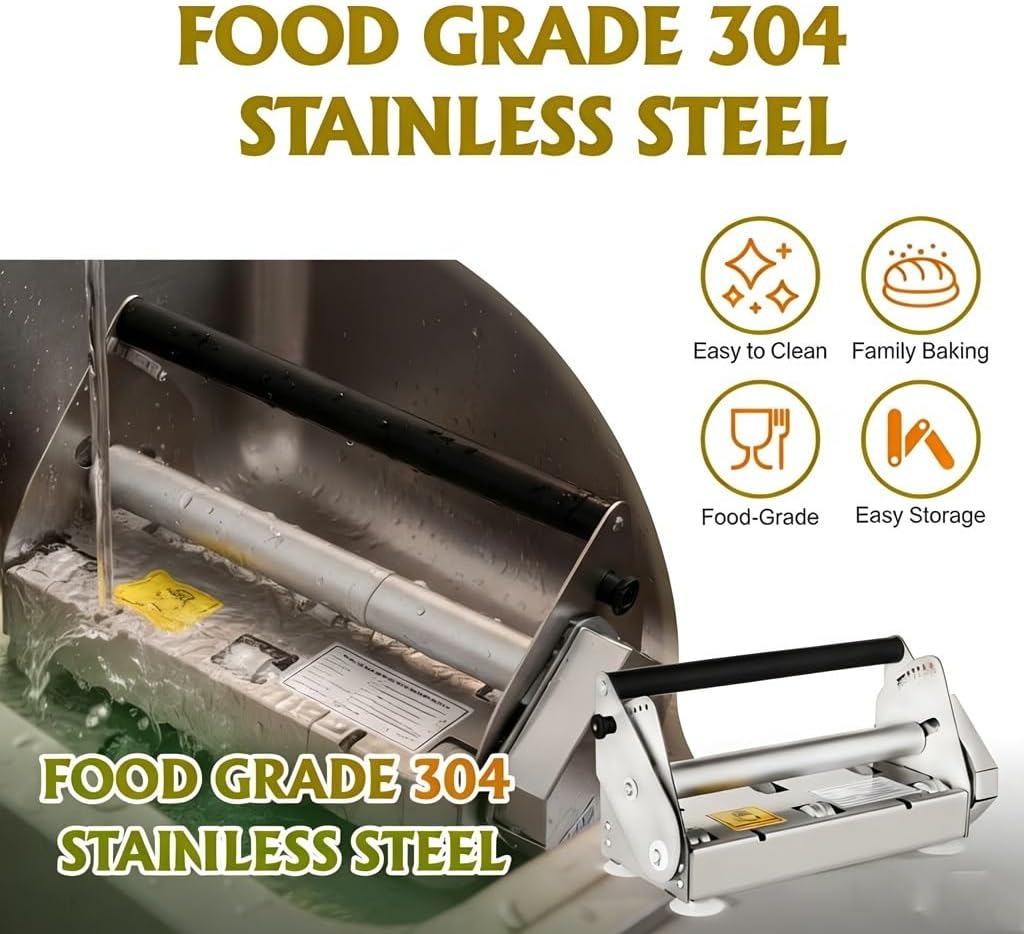 Name: Detachable Dough Sheeter Machine Material: Stainless steel + PE Thickness adjustment range: 0.2-17.5mm (ultra-thin pasta to thick pie crusts) Sheeter boards size: 27.5in x 12in (spacious for large dough batches) Stored size: 13.7 × 7.6 × 5.5 inches (compact storage) Open size: 31.4 × 13.7 × 7.6 inches (roomy working area) Weight: 19.8LBS/9KG Application: home, cafe, handmade bakery