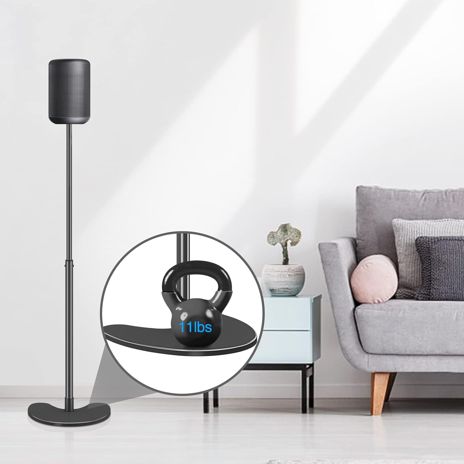 Mounting Dream MD5401 Speaker Stands Pair Bookself Rear Speaker Floor Stands Extendable 11lbs Loading, MD5411 Single Speak Stand for Sonos One, One SL, Play:1, Height Adjustable 39.6"- 48.3"