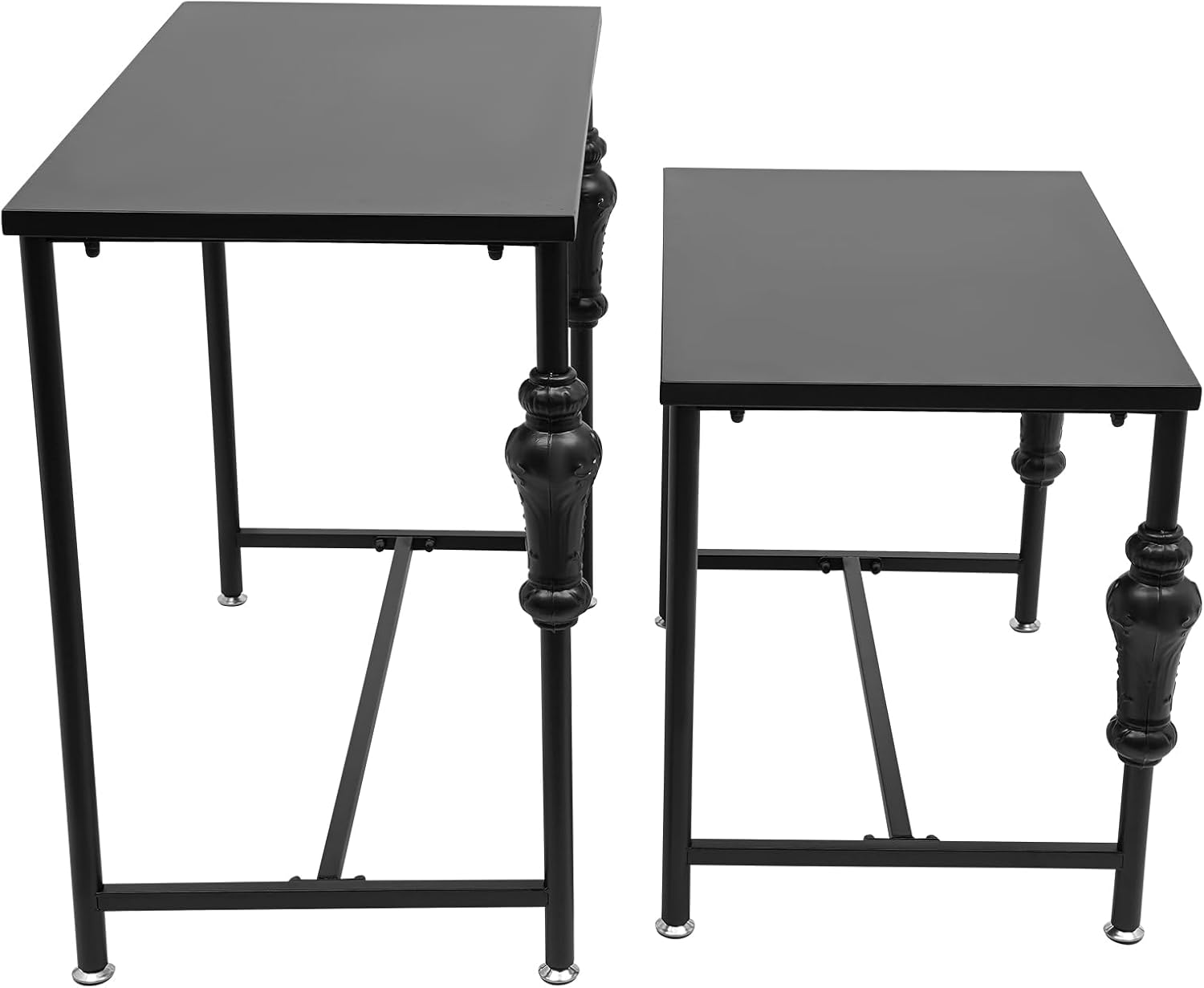 Sturdy and exquisite display racks keep your clothes and shoes organized and add charm to your store or bedroom. The high hardness material and sturdy construction give it high stability and weight capacity. With a simple and beautiful appearance, this display rack is an ideal assistant for displaying a variety of beautiful clothes, shoes and bags!Details:Round Edges: The rounded edges and corners are not only more comfortable to touch but also protect your skin from being scratched.Adjustable Feet: They can be slightly adjusted in height within 0.2 inches to accommodate uneven floors, making the product more non-slip and stable. SpecificationMaterial: Carbon SteelProcess: High-temperature Baking PaintColor: White/BlackStyle: ModernAssembly Required: YesMounting Type: Floor StandingAdjustable Height of Footrest: 5mm/0.2inEach Load Capacity: 22.68kg/50lbsPackage Size: 96*53*13cm/37.8*20.87*5.12inProduct Size: 75*43*55cm/29.53*16.93*21.65in, 90*43*75cm/35.43*16.93*29.53in Gross Weight: 13.3kg/29.32lbsNet Weight: 12kg/26.46lbsPackage Included2*Display Racks1* WrenchOther Accessories for InstallationNotes1.Please check the size carefully before ordering.2.Please note that this product does not include any displays on the tabletop.3.Please use the product within its load-bearing capacity to avoid damage.4.Please allow the slight color difference caused by the shooting light and 1-3 cm error due to manual measurement, and make sure you do not mind before ordering.