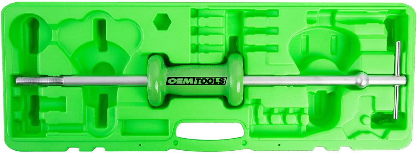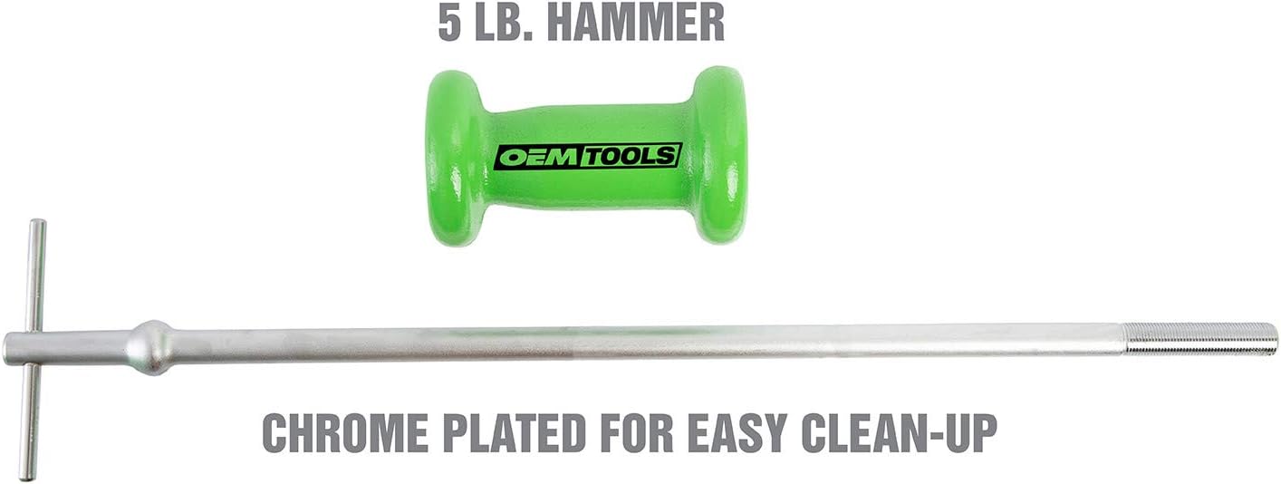 If you’re facing auto body work, the OEMTOOLS 37033 5 Pound Slide Hammer Puller is a great place to start. The foundational tool for pulling gears, bearings, oil seals and dents in fenders, side panels, and other vehicle body parts, a high quality, heavy duty slide hammer is a must have among body shop hammers and dollies. Using a side hammer puller is easy. Once your attachment has been connected and is in place, slide the large slide hammer close to the end of the tool, then sharply pull back on the T handle, while you snap the weight towards the handle. The weighted slide hammer adds torque and pull power, for extraction, dent removal, and more. This powerful 5 pound puller features a chrome plated main shaft for easy clean-up and a sleek, professional look. The included carrying case includes spaces for your attachments, so you can keep everything you need in one place. Plus, this versatile 5/8 by 18 inch puller tool is compatible with any other attachments with the same thread. Don’t let this opportunity slide by. Add the OEMTOOLS 37033 5 Pound Slide Hammer Puller to your auto body tool arsenal today.