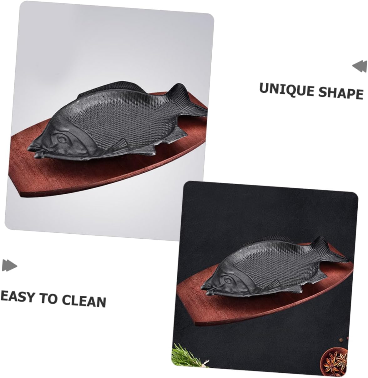 Package Include 1 x Plate 1 x wood tray Characteristics -Color:Multi fish shaped pan -Material:Iron, wood shrimp -Size: 40.00X18.00X3.50cm/15.72X7.07X1.38in iron Fish Plate -It comes with unique and decorative fish shape, which can give you special visual effect when eating fish Fish -This food serving plate is made from iron, wood material, which is heat-resistant and practical for the lasting use hot. -Iron Plate is not just a household dish, which can also be used in restaurant, coffee shop, dessert shop fajita. -Easy to clean, you can wash the iron plate with and hot water or place it into your dishwasher bruno. -This iron dish can be used for salad, dessert, steak, pasta, for daily and restaurant use set.Goods Informationpie dish The fine workmanship make this plate is decorative and , which will showcase your favorite foods.snack storage tray Its fish shape design makes it for serving fish.fish tray This is a household iron Plate, which is great as pastry plate, cake plate, salad plate, dessert plate and as vegetable plate