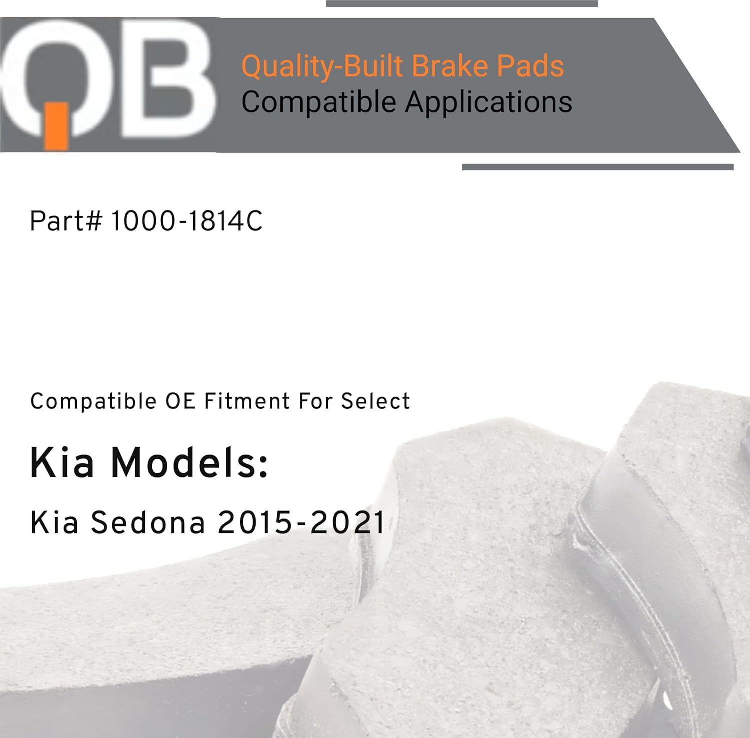 Smart, Reliable, and Built to Last - QB front ceramic brake pads Get the performance you need without overspending. The QB front ceramic brake pads by QUALITY-BUILT offer dependable, everyday stopping power for drivers who want lasting quality at a competitive price. Designed for everyday driving, these brake pads strike the perfect balance between affordability, durability, and quality. Formulated with a low-dust ceramic compound, these pads help keep your wheels cleaner over time while providing the consistent braking performance you’d expect from more premium brake pads. Whether you're navigating stop-and-go traffic or running weekend errands, you can count on smooth, quiet operation with every stop. Built to meet OEM standards, these pads deliver a precise fit and steady performance you can rely on - no surprises, no compromises. They're ideal for DIY installs or quick shop jobs, giving you confidence in your brakes without the premium price tag. For the daily drive, the quick fix, or the budget-friendly upgrade - QB front ceramic brake pads deliver what matters most: reliability, value, and peace of mind. Compatible with Kia Sedona 2021-2015 (PART#1000-1814C) Verify FITMENT using AmazonConfirmedFit tool
