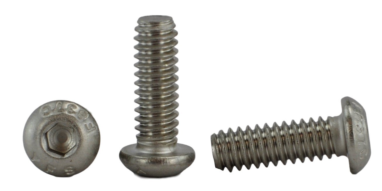 All pictures represent actual product. A button head socket cap screw is a screw with a button head and hexagon drive for tightening with an Allen-style wrench. This screw carries a recessed internal socket drive to add strength. The 18-8 stainless steel material provides strength and offers good corrosion resistance in many environments. The material may be slightly magnetic. The button head is round with a low profile, short vertical sides and is suitable for light duty applications. The internal hex drive, also known as a hex-socket drive, has a hexagonal slot that requires an Allen key driver, also known as a hex key or Allen wrench. Socket cap screws are threaded fasteners that have a cap head with an internal socket drive for installing in areas with limited side clearance.