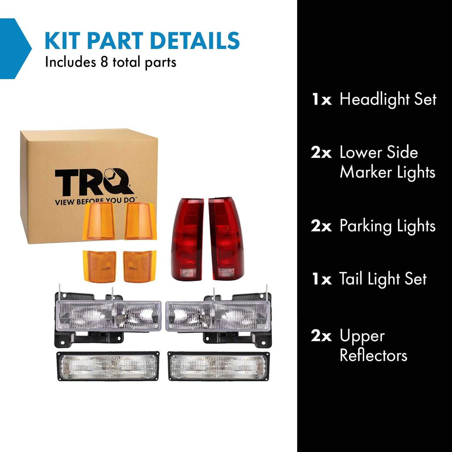 8 Piece Lighting KitKit Includes(1) Headlight Set(2) Lower Corner Lights(2) Parking Lights(2) Upper ReflectorsFitmentChevrolet Blazer 1992-93 - with Composite HeadlightsChevrolet C1500 Truck 1990-93 - with Composite HeadlightsChevrolet C2500 Truck 1990-93 - with Composite HeadlightsChevrolet C3500 Truck 1990-93 - with Composite HeadlightsChevrolet K1500 Truck 1990-93 - with Composite HeadlightsChevrolet K2500 Truck 1990-93 - with Composite HeadlightsChevrolet K3500 Truck 1990-93 - with Composite HeadlightsChevrolet Suburban C1500 1992-93 - with Composite HeadlightsChevrolet Suburban C2500 1992-93 - with Composite HeadlightsChevrolet Suburban K1500 1992-93 - with Composite HeadlightsChevrolet Suburban K2500 1992-93 - with Composite HeadlightsProduct AttributesQuantity: 8 PieceReference Numbers114-181L114-181R116-00933L116-01170L116-01170R116-821L116-821R116-933R12-1411-0112-1412-011503492915034930165158271651582817-1106-0117-1107-0117-1108-0117-1109-0120-1668-0020-1669-00597519559751965975197597519859754235975424GM2502101GM2503101GM2518135GM2519135GM2520108GM2521108GM2550105GM2551105GM2556102GM2557102HLA95280LHT01278LHT01279LHT03063LHT04448LHT04449LHT04752LHT04753LHT04855LHT04856